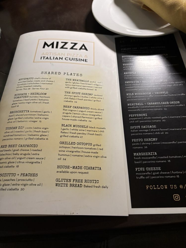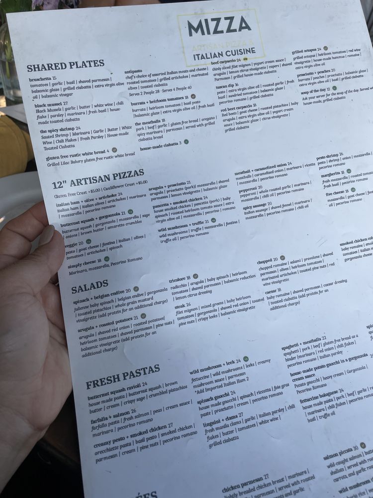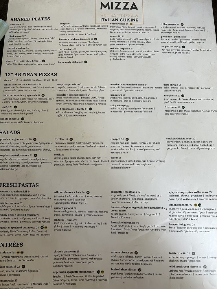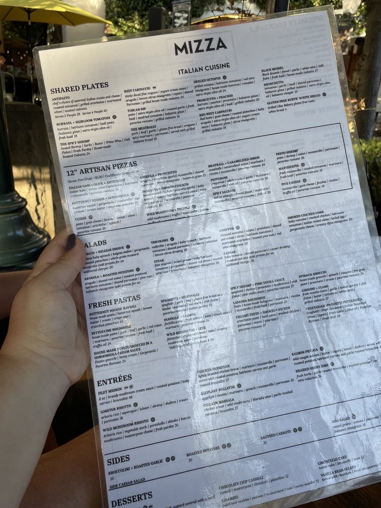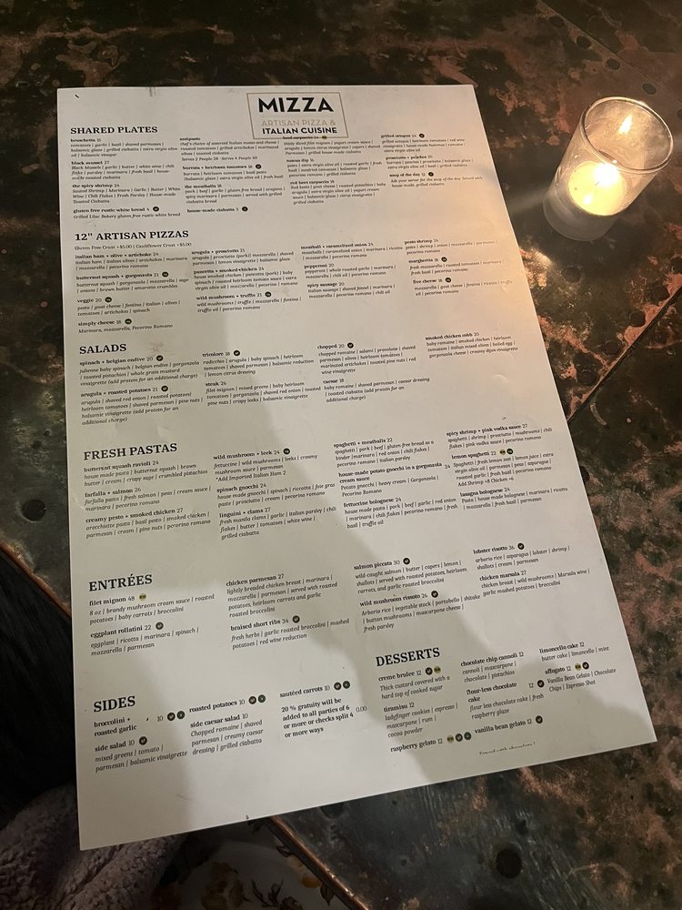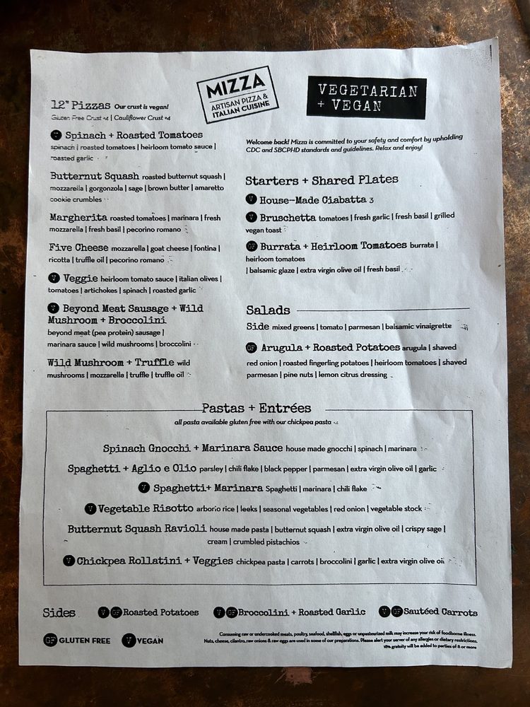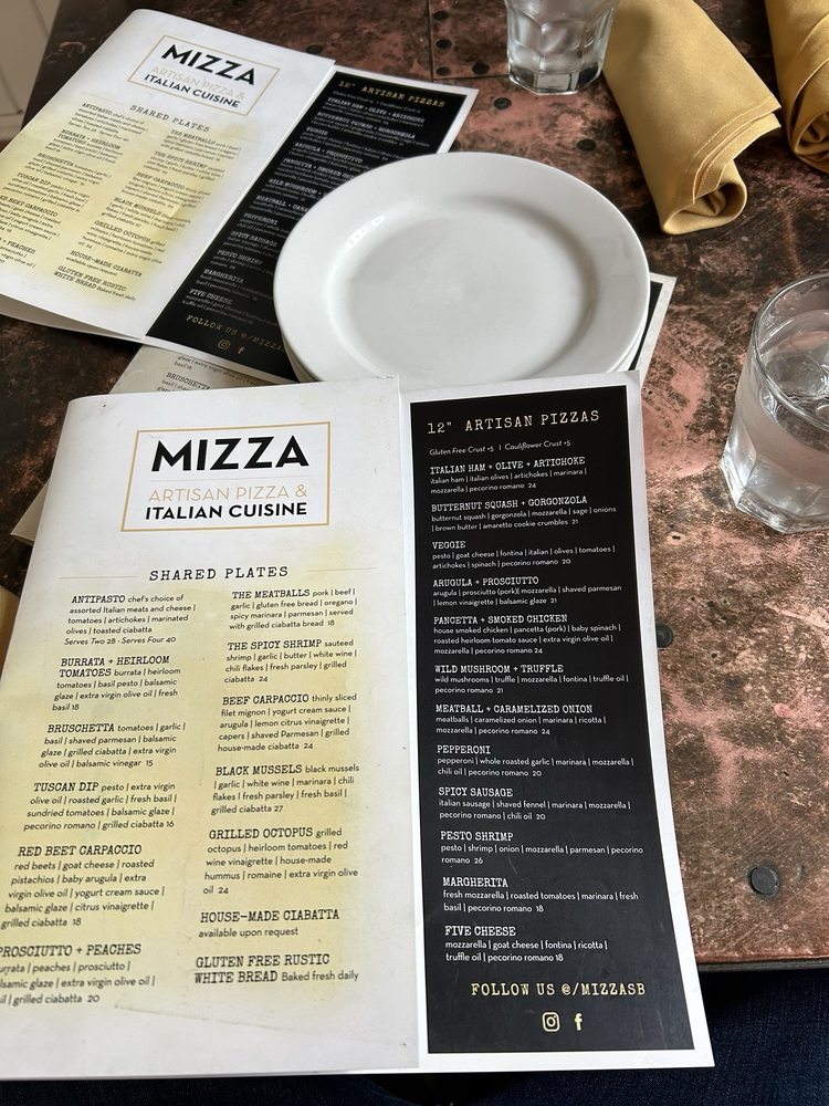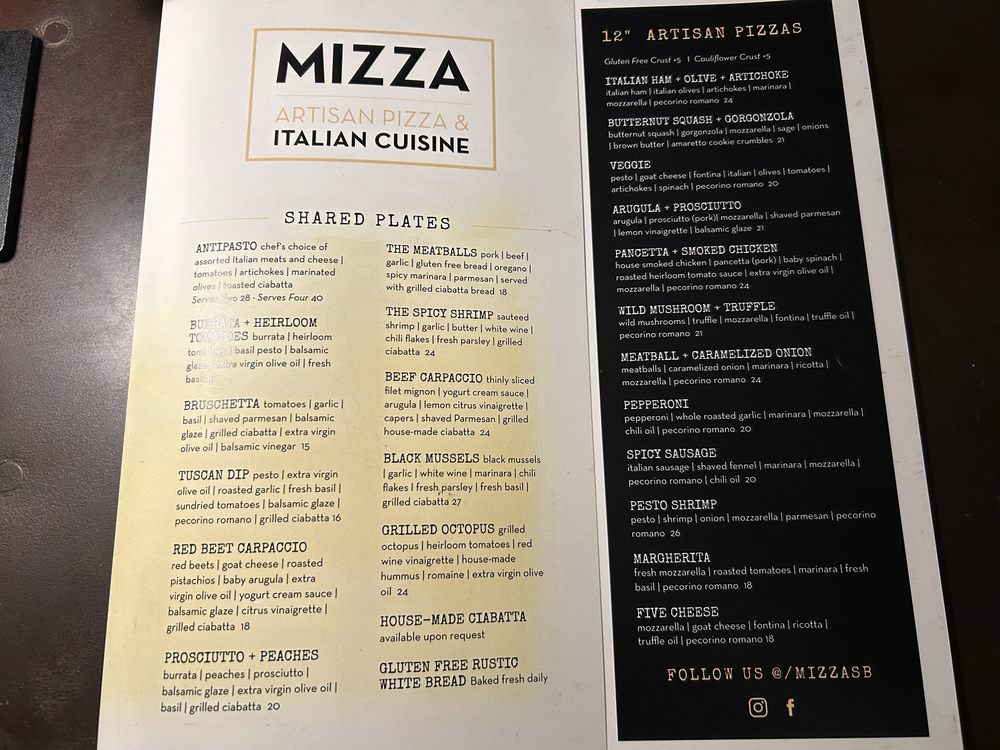 Mizza, located in Santa Barbara, offers a diverse menu of salads, pizzas, and Italian dishes. With a focus on vegan options and a range of amenities including outdoor seating, full bar, and free Wi-Fi, Mizza provides a casual yet intimate dining experience. Customers praise the service and ambiance, with standout dishes like the burrata and heirloom salad, lemon spaghetti, and vegan Veggie Pizza receiving high marks. The attentive staff, including servers like Joe and Xzavier, enhance the overall dining experience. The restaurant's commitment to quality ingredients and flavors shines through in dishes like the butternut pizza and tiramisu. Mizza is a must-visit for those seeking delicious food, excellent service, and a cozy atmosphere in the heart of downtown Santa Barbara.